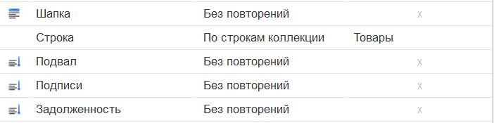 | Повторять в шапке | Область будет повторяться в начале каждой страницы печатной формы |